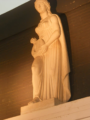 Encontramos en esta zona cuatro grandes columnas que sustentan cuatro esculturas de corte clásico, obra de Francisco Rallo.